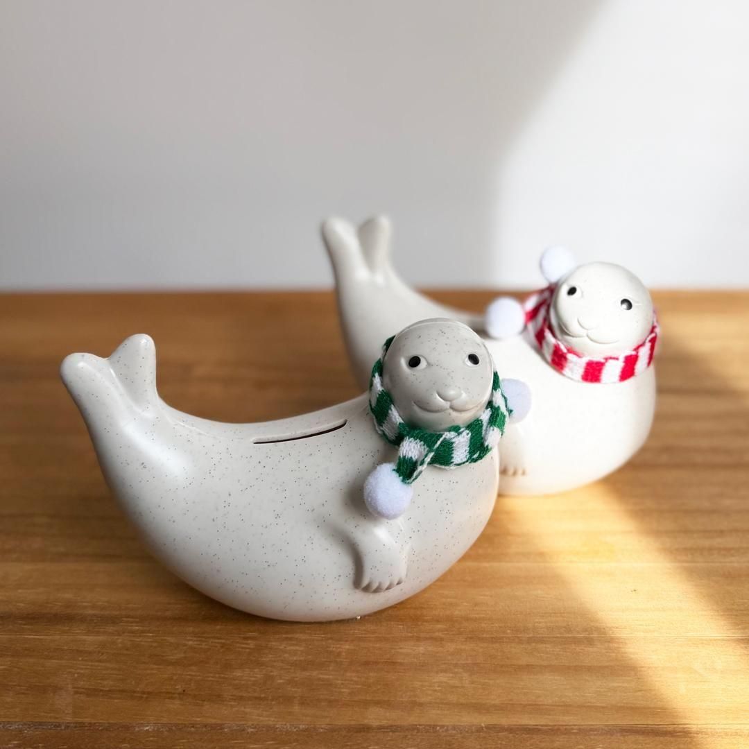 レッドマフラー付き アザラシ貯金箱 Seal Money box NORPPA PLASTEP(プラステップ)Palaset