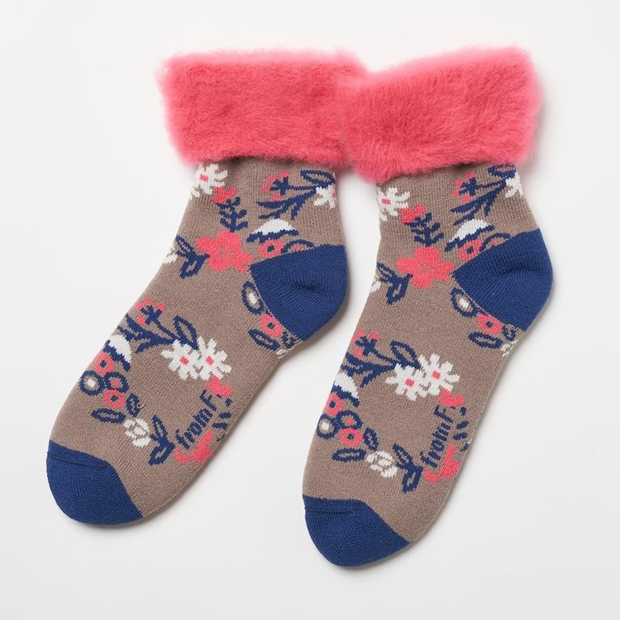 もこもこソックス seppele(セッペレ) 花輪 ウォームグレー (約22.5-25cm)  from F(フロムエフ)