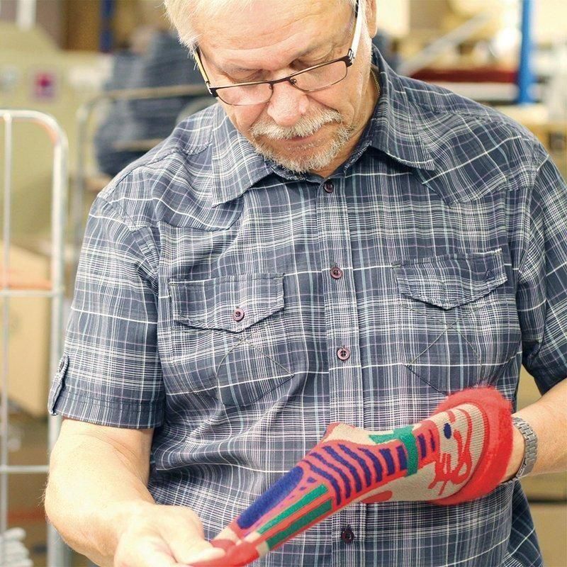 独自の「もこもこ」なはき心地と暖かさを実感できるよう靴下職人が良質な原料から丁寧に作っています。遊び心ある北欧デザインも魅力の1つ。