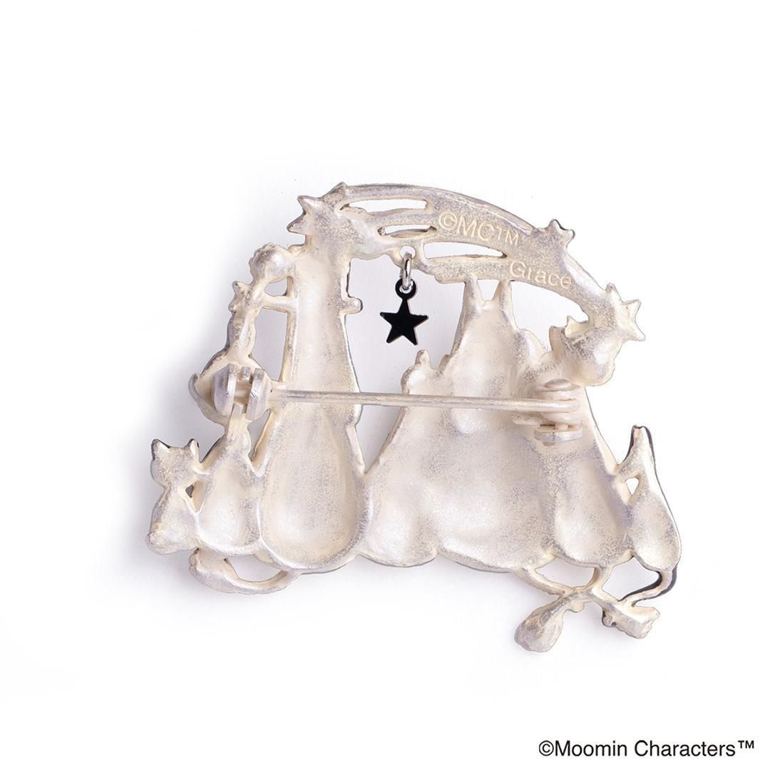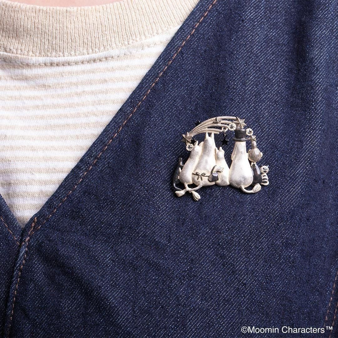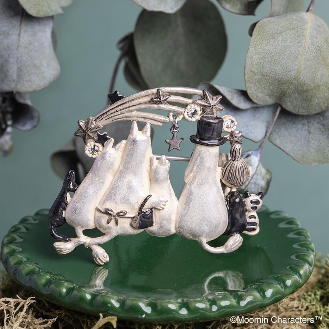 満天の星を眺めているムーミン一家をイメージしたブローチ。流れ星に何を願っているのでしょうか?